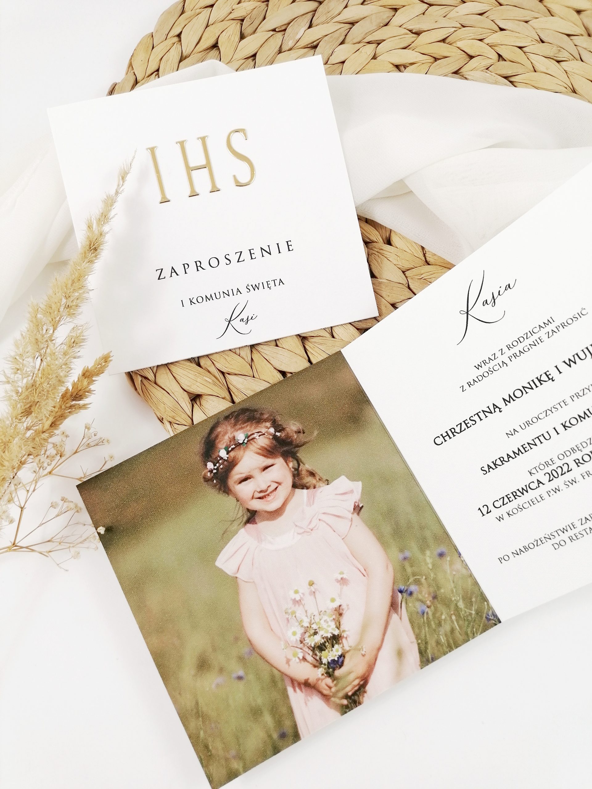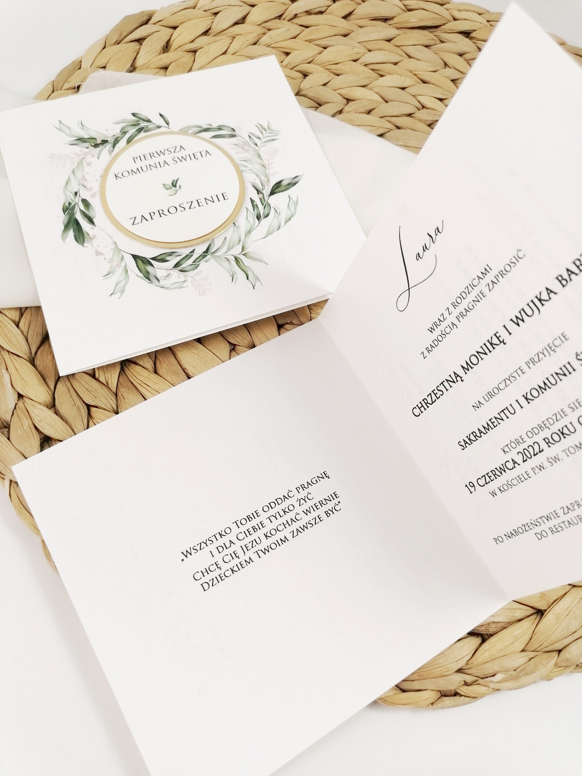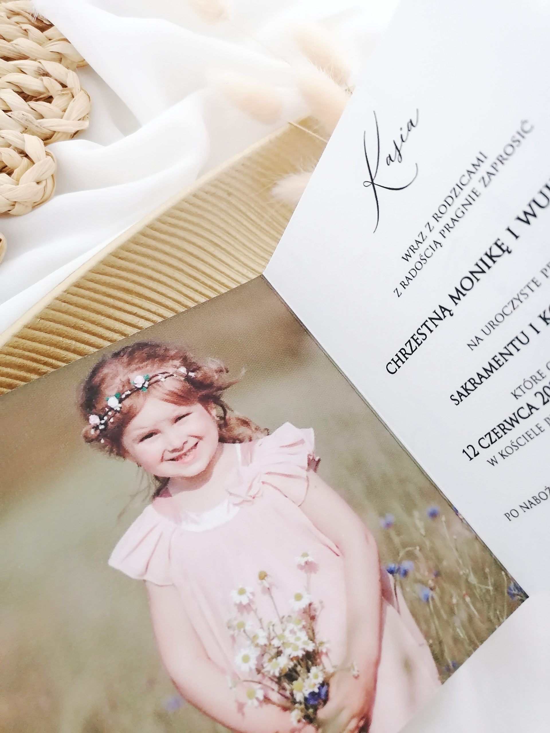 W środku zaproszenia zdjęcie lub cytat.
