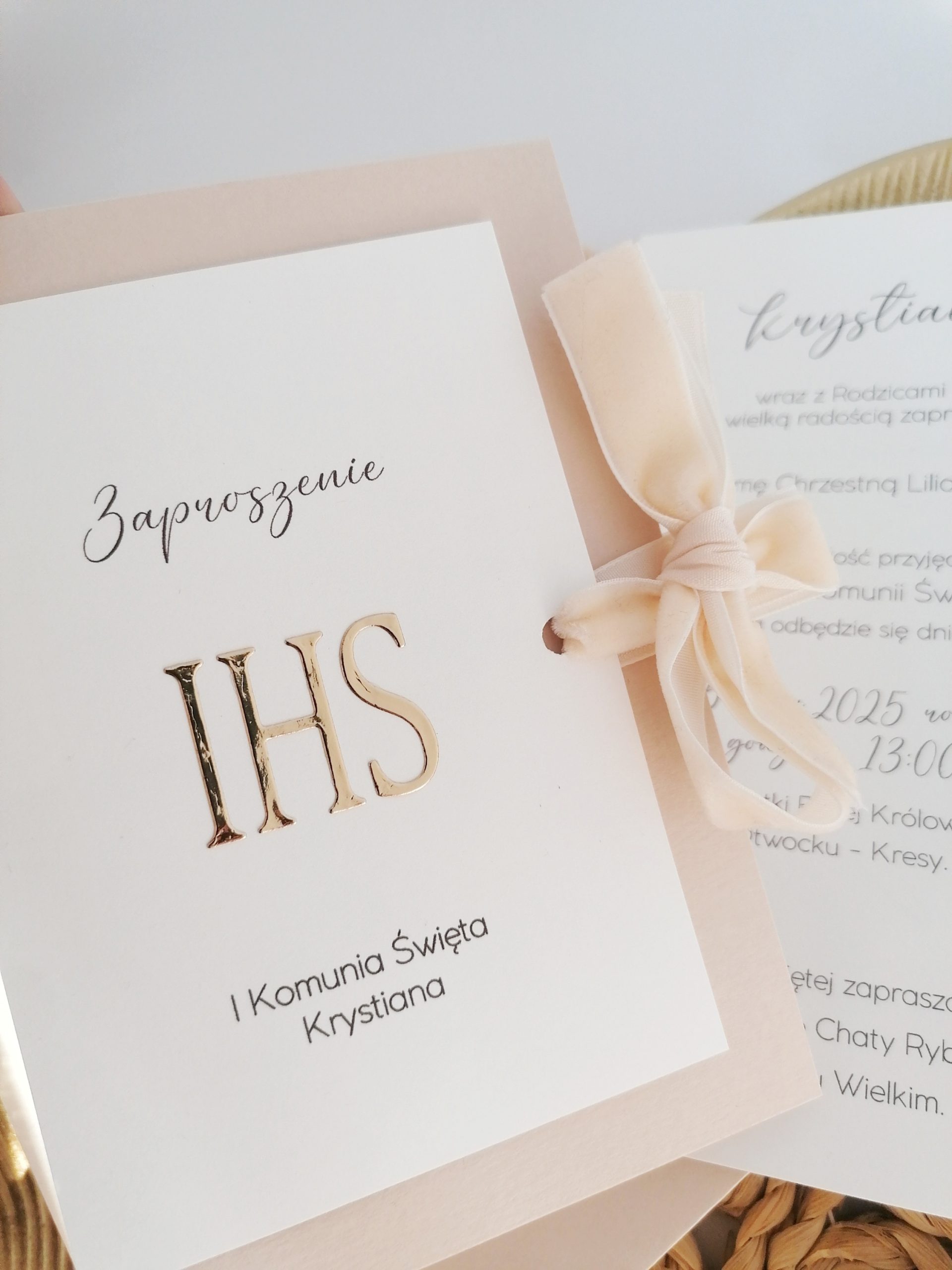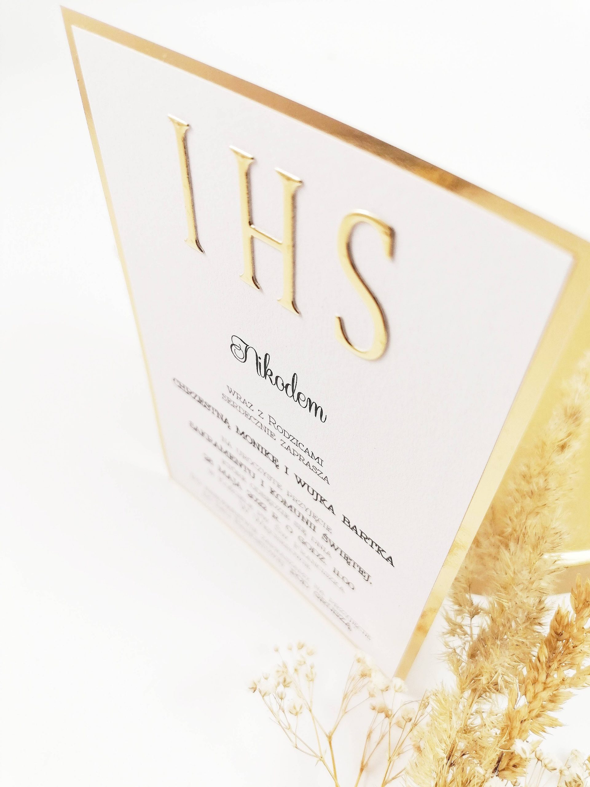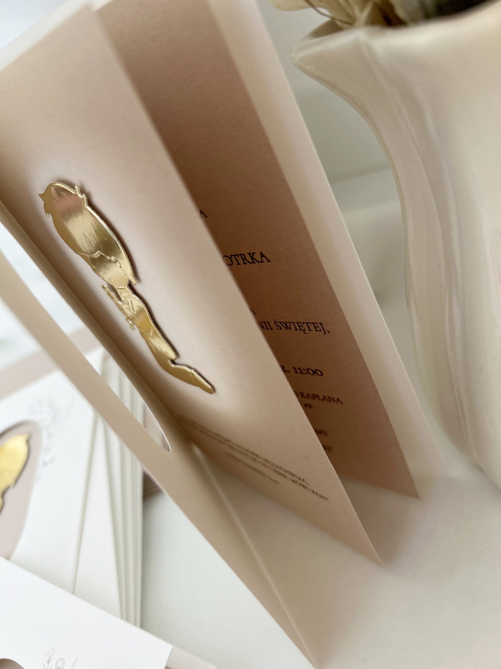 Zaproszenie 11 cm x 16 cm, treść wewnątrz w formie wklejki.
