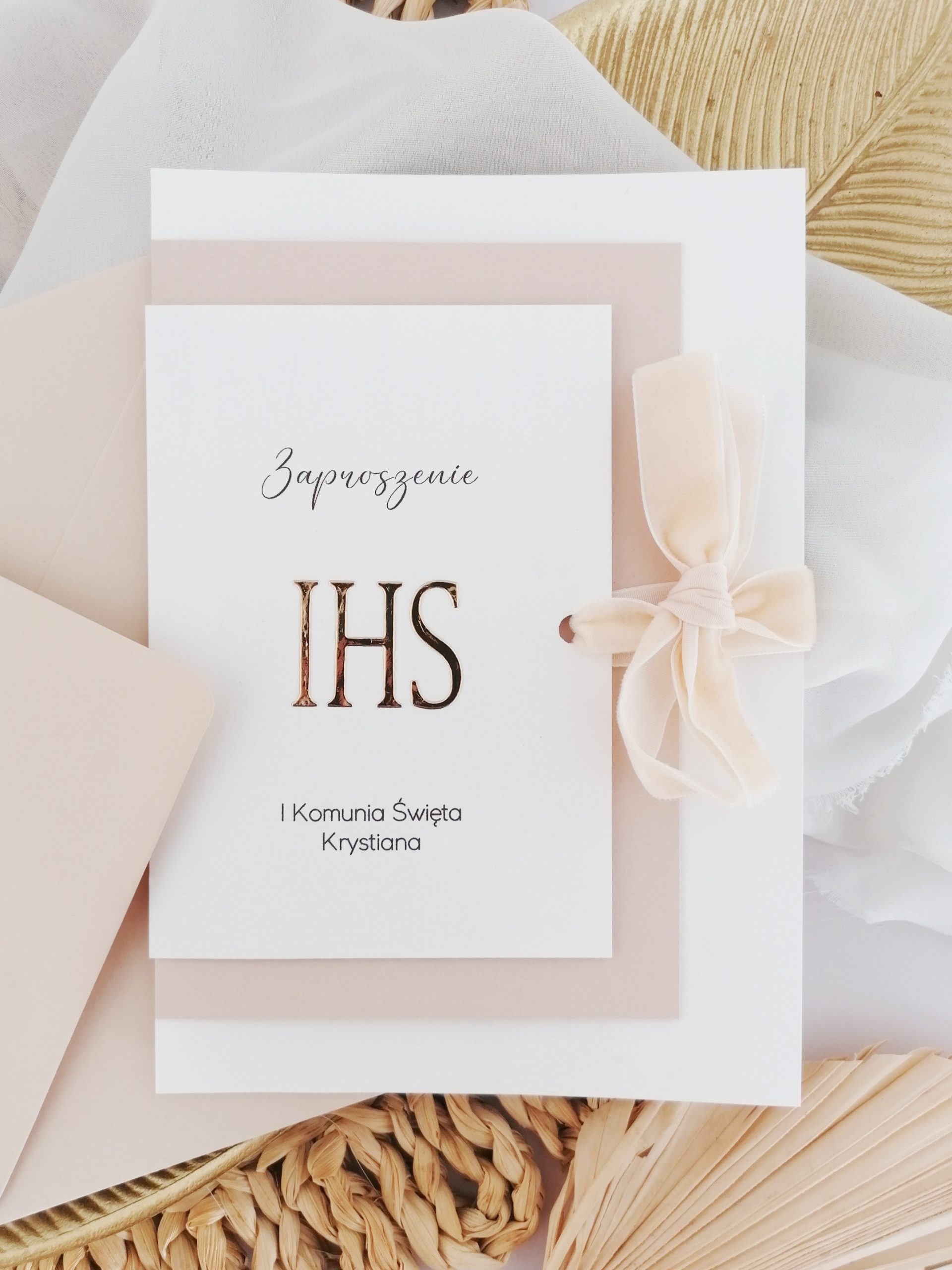 Zaproszenie w rozmiarze 11 cm x 16 cm, trzy warstwy papieru.