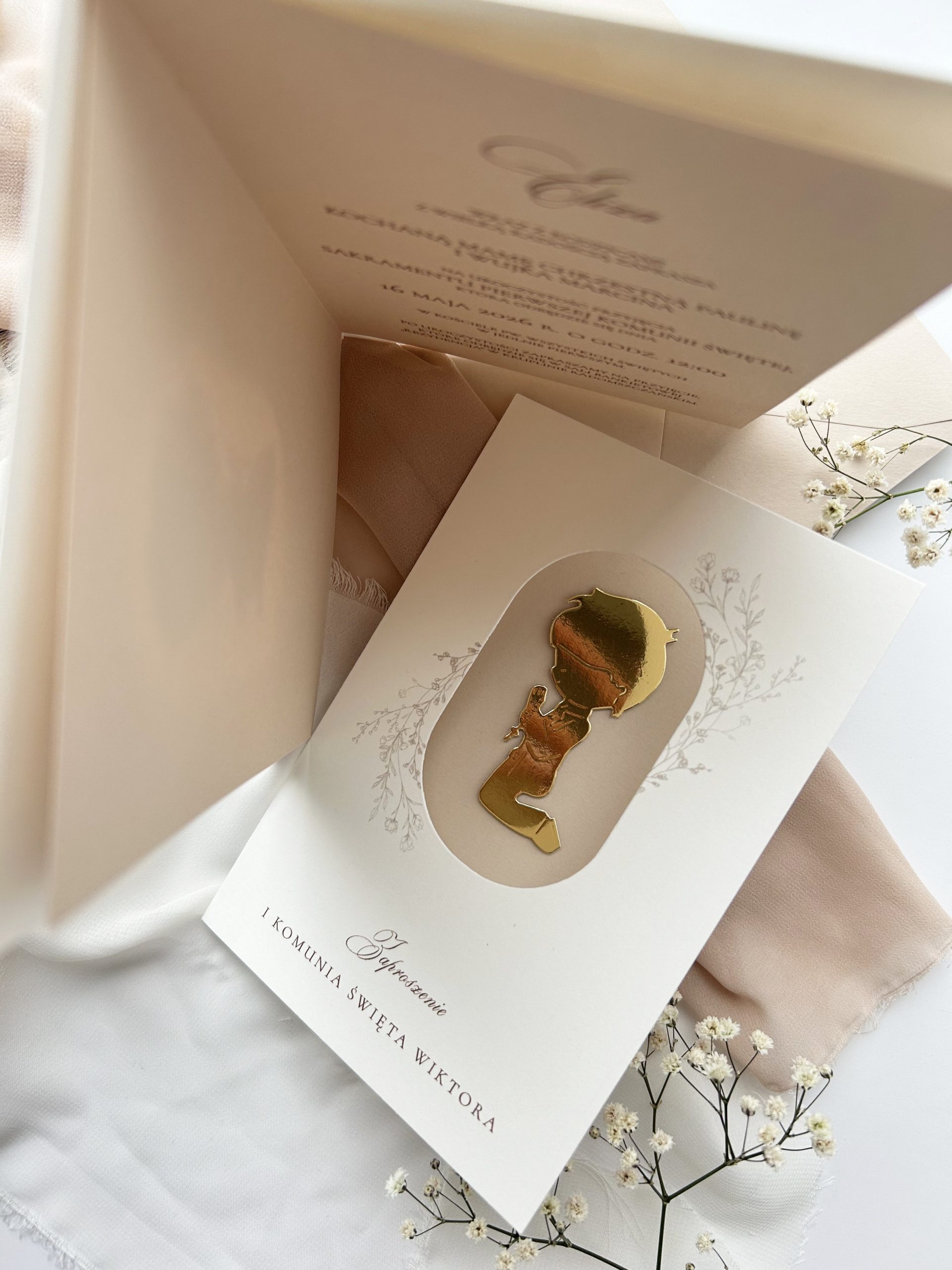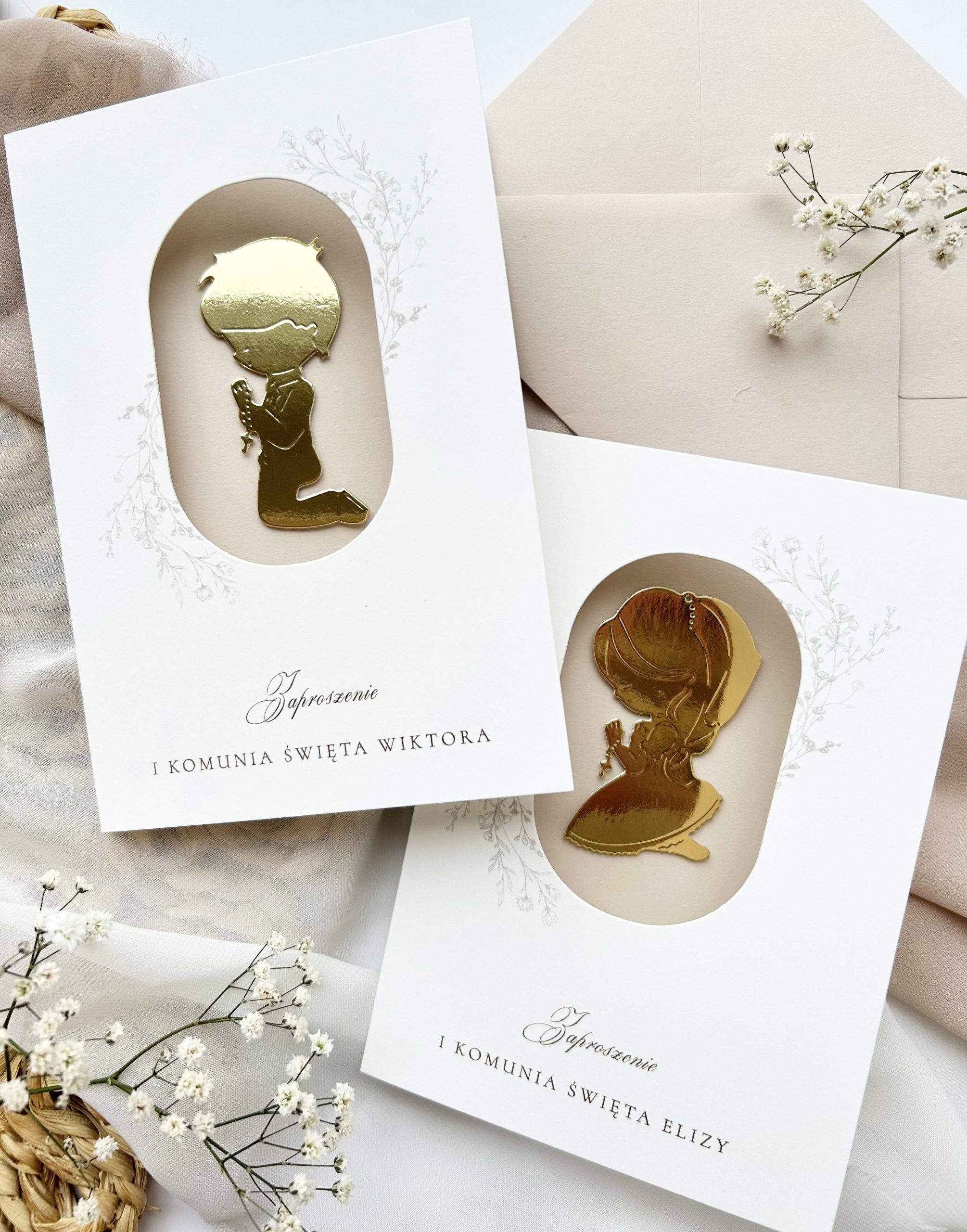 Do każdego zaproszenia można dobrać upominki, dekoracje w tym samym motywie.