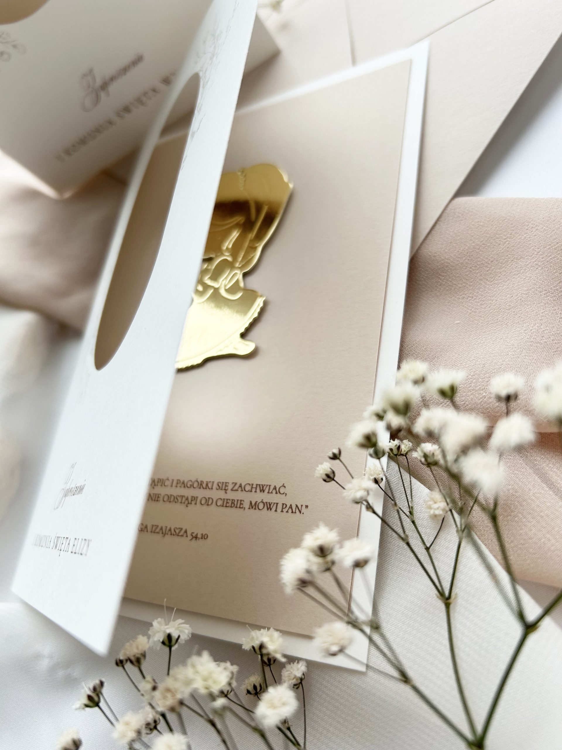 Okładka i element wycinany dostępny w kolorze: złoty, srebrny, błękitny, kremowy, pudrowy różowy, beżowy, eko.