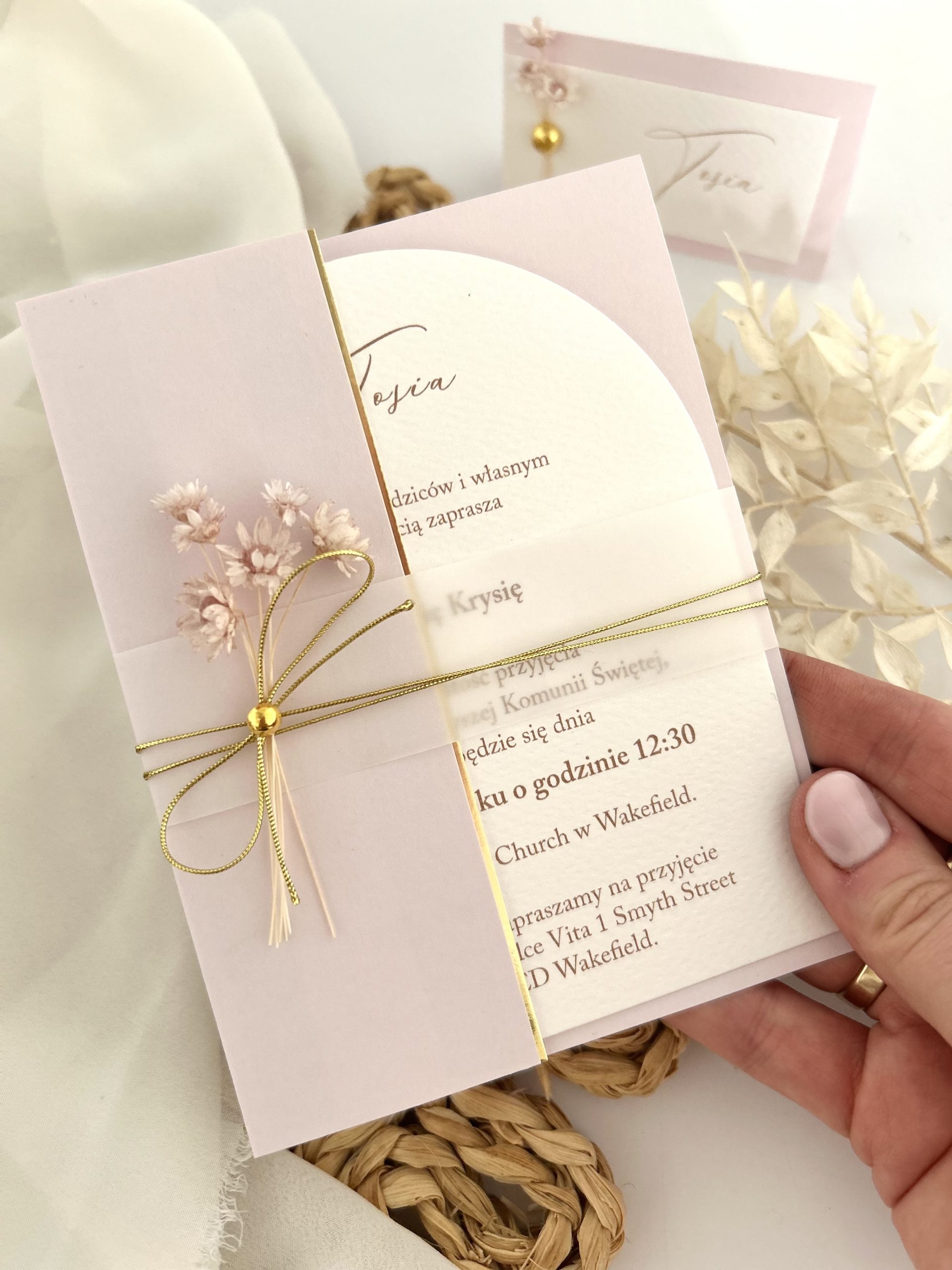 Rozmiar zaproszenia: 11cm x 14 cm.