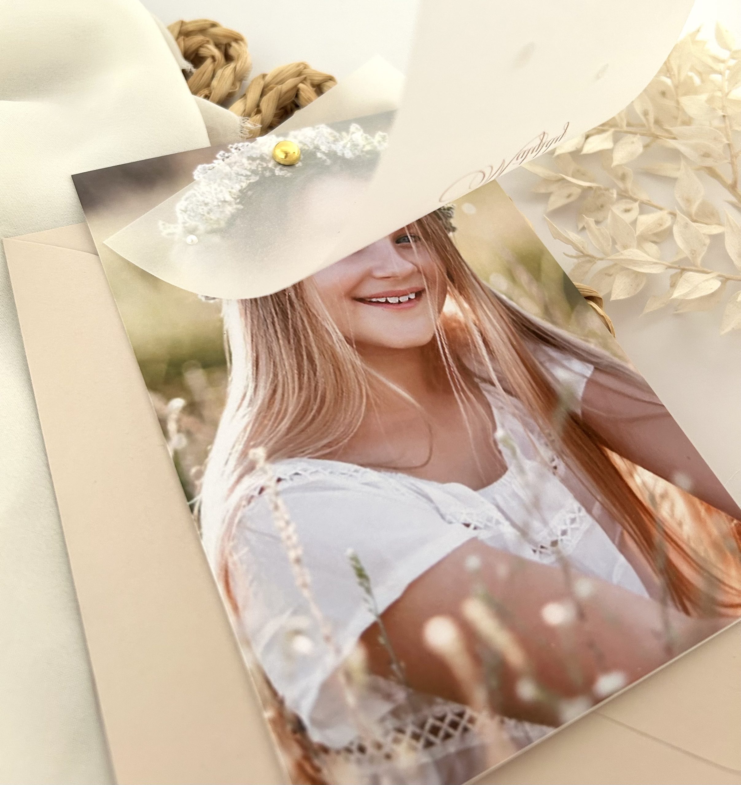 Kalka jako okładka +zdjęcie na papierze fotograficznym + karta z treścią