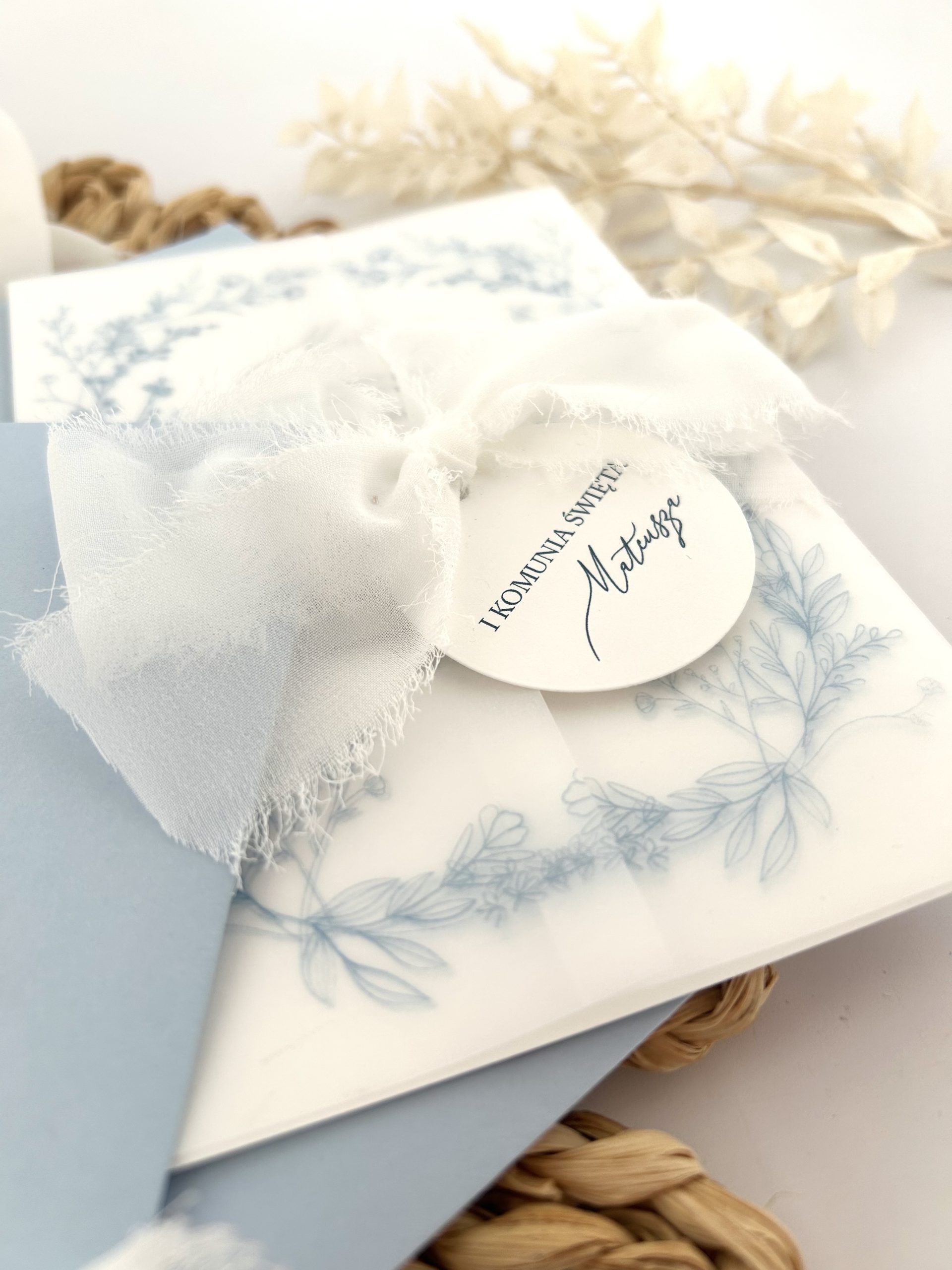Kalka jako okładka + szyfonowa wstążka + oraz suszek.