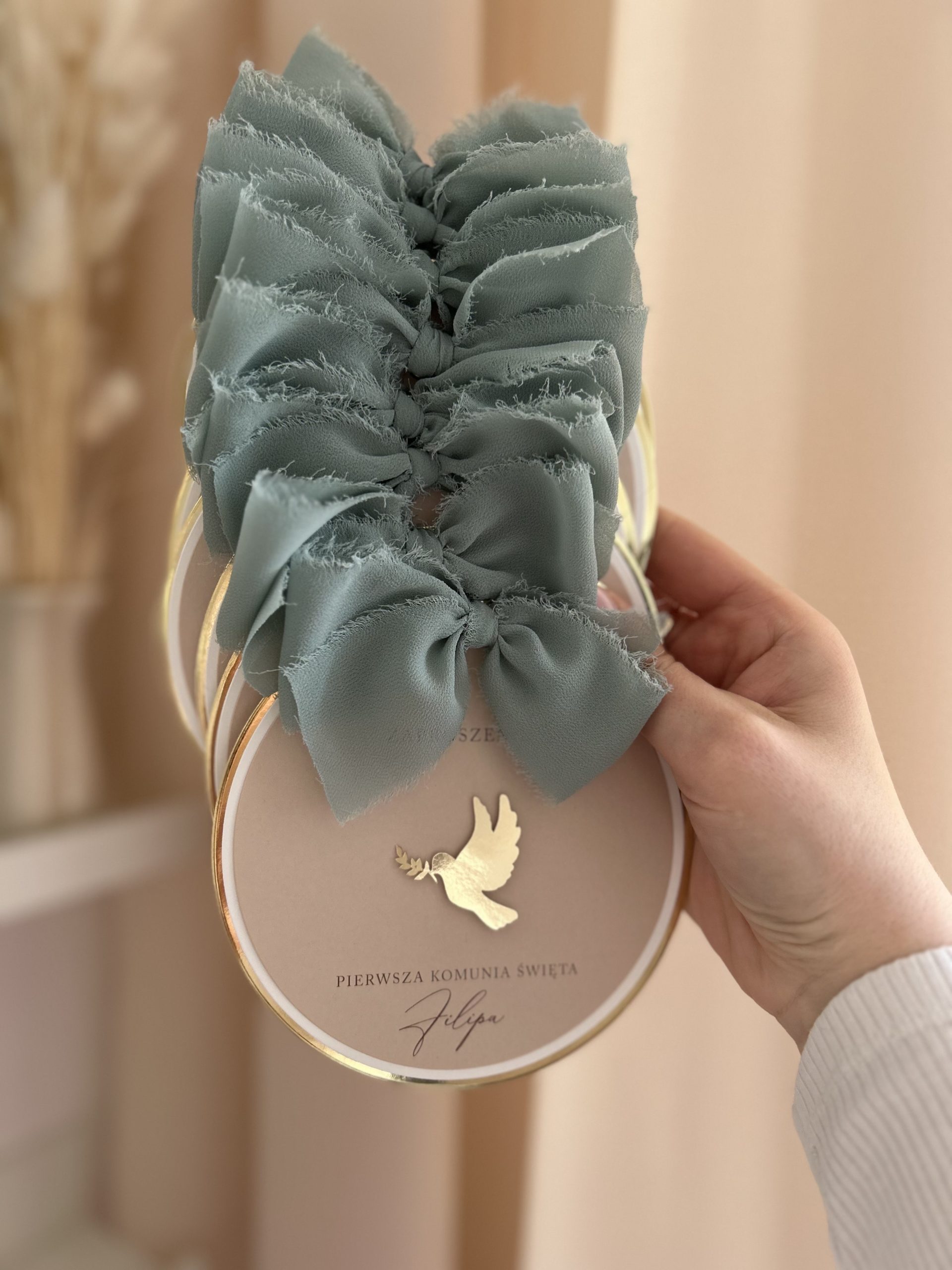 Ozdobienie wstążką szyfonową w dowolnym kolorze.